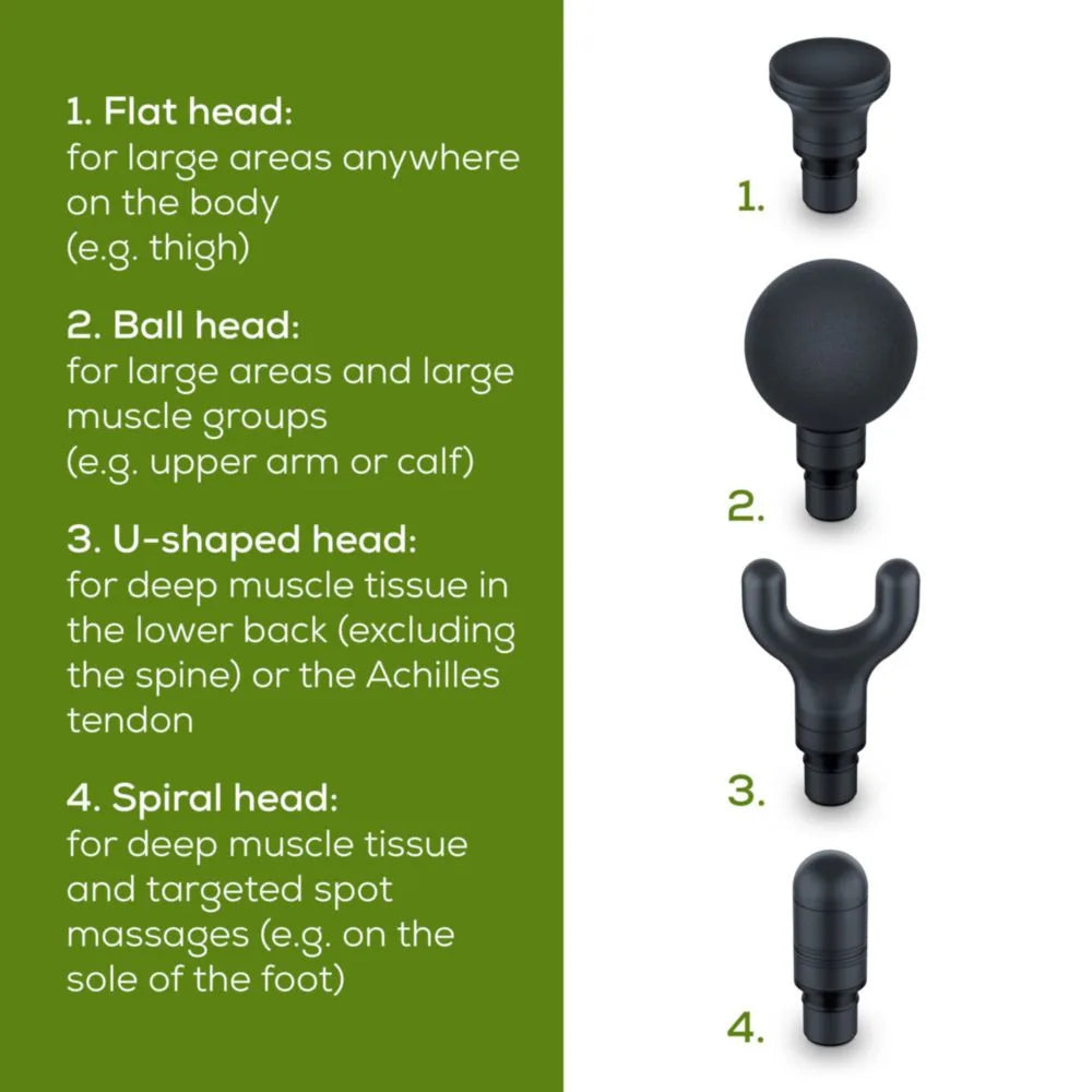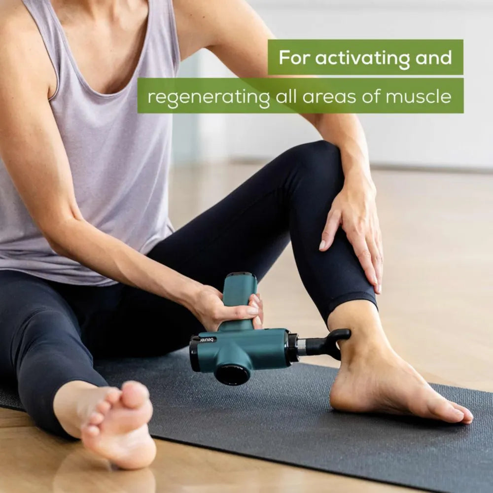 The Beurer MG99 is a compact, rechargeable deep-tissue massage gun designed to relieve muscle tension and support recovery. With adjustable intensity levels and multiple interchangeable heads, it delivers targeted percussion to help reduce stiffness, improve circulation, and soothe sore muscles after workouts or long days.