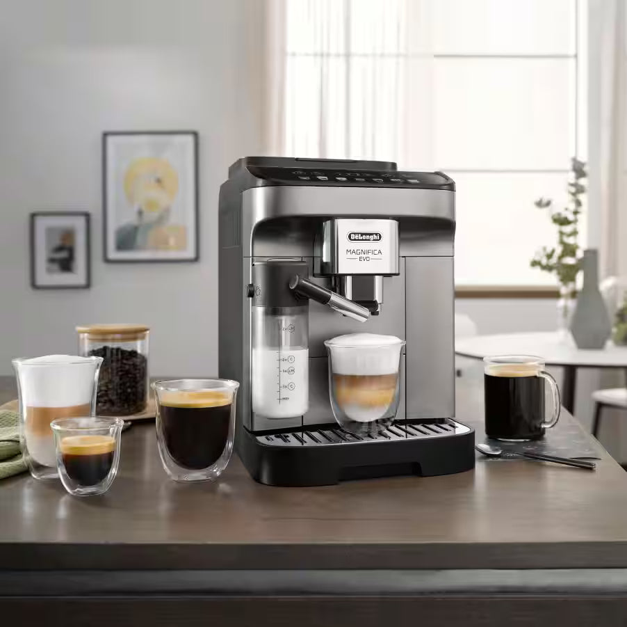 The De’Longhi Magnifica Evo ECAM290.81.TB is a sleek, user-friendly espresso machine that brings café-quality coffee to your home. With its advanced LatteCrema Hot Technology and intuitive touch interface, it delivers a range of coffee beverages with ease.
