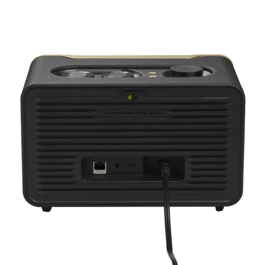 The JBL Authentics 200 blends iconic retro design with cutting-edge audio and smart features. Crafted with premium materials, it delivers powerful stereo sound with deep bass and crisp highs, making it a standout addition to any room.