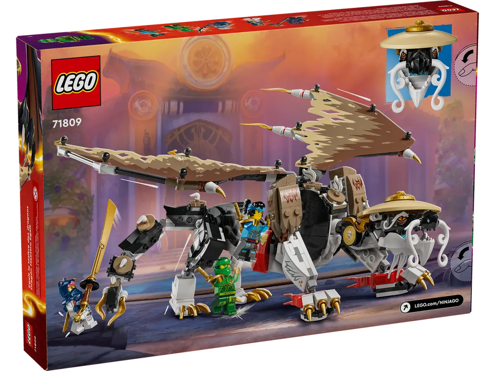 The LEGO 71809 Egalt the Master Dragon V29 brings a powerful dragon to life with posable wings, articulated limbs, a detailed head, and space for a minifigure, offering an exciting and immersive building experience for fans of the ninja world.
